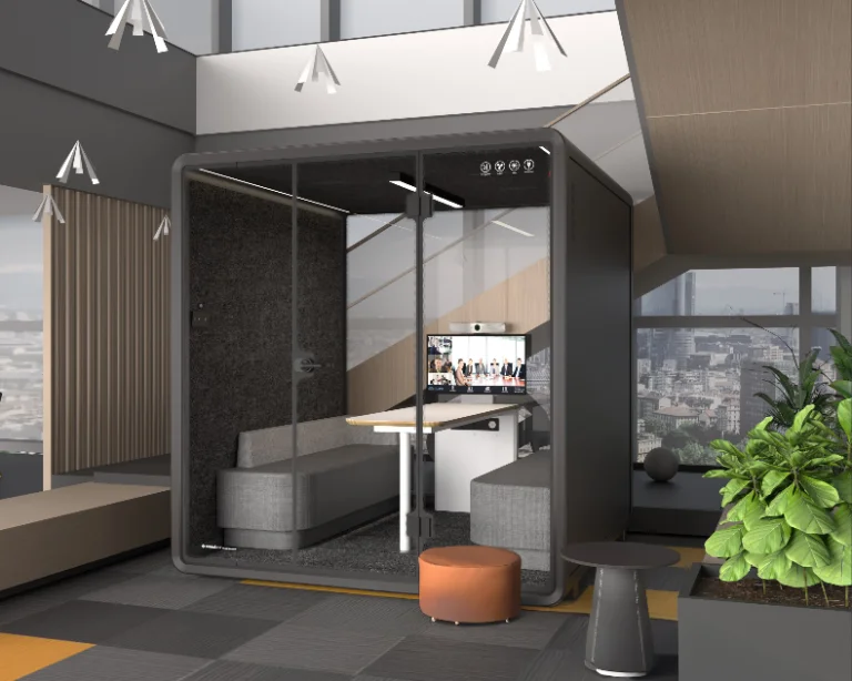 Experience ultimate focus in our Office Pods equipped with Soundproof Acoustic Panels and Acoustic Meeting Pods for noise-free workspaces.